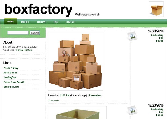 It sports a true category navigation and custom widgets to give your Tumblog a real Magazine feel, like Related Articles, Latest Posts, Tagcloud, Comments, Social Network Sharing, a widget area for as many widgets as you like (for example ads, polls and so on) and much more. This is one of the better simple tumbler themes.